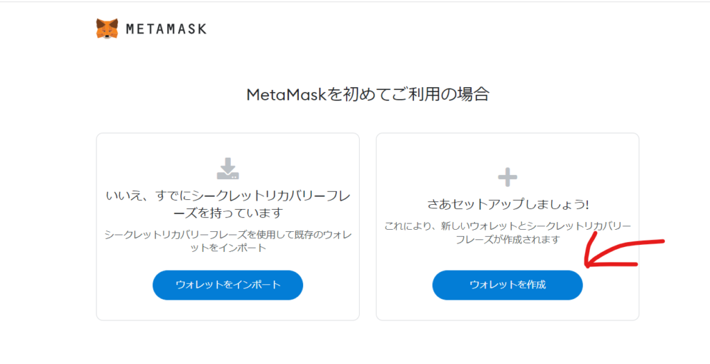 次に「ウォレットを作成」を選択します。