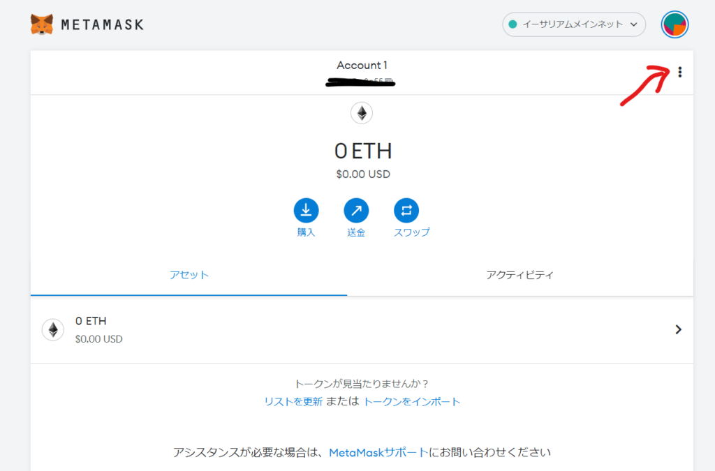 MetaMaskにアカウントをインポートするには、まず秘密の鍵をエクスポートし、秘密の鍵を使ってアカウントをMetaMaskにインポートします。